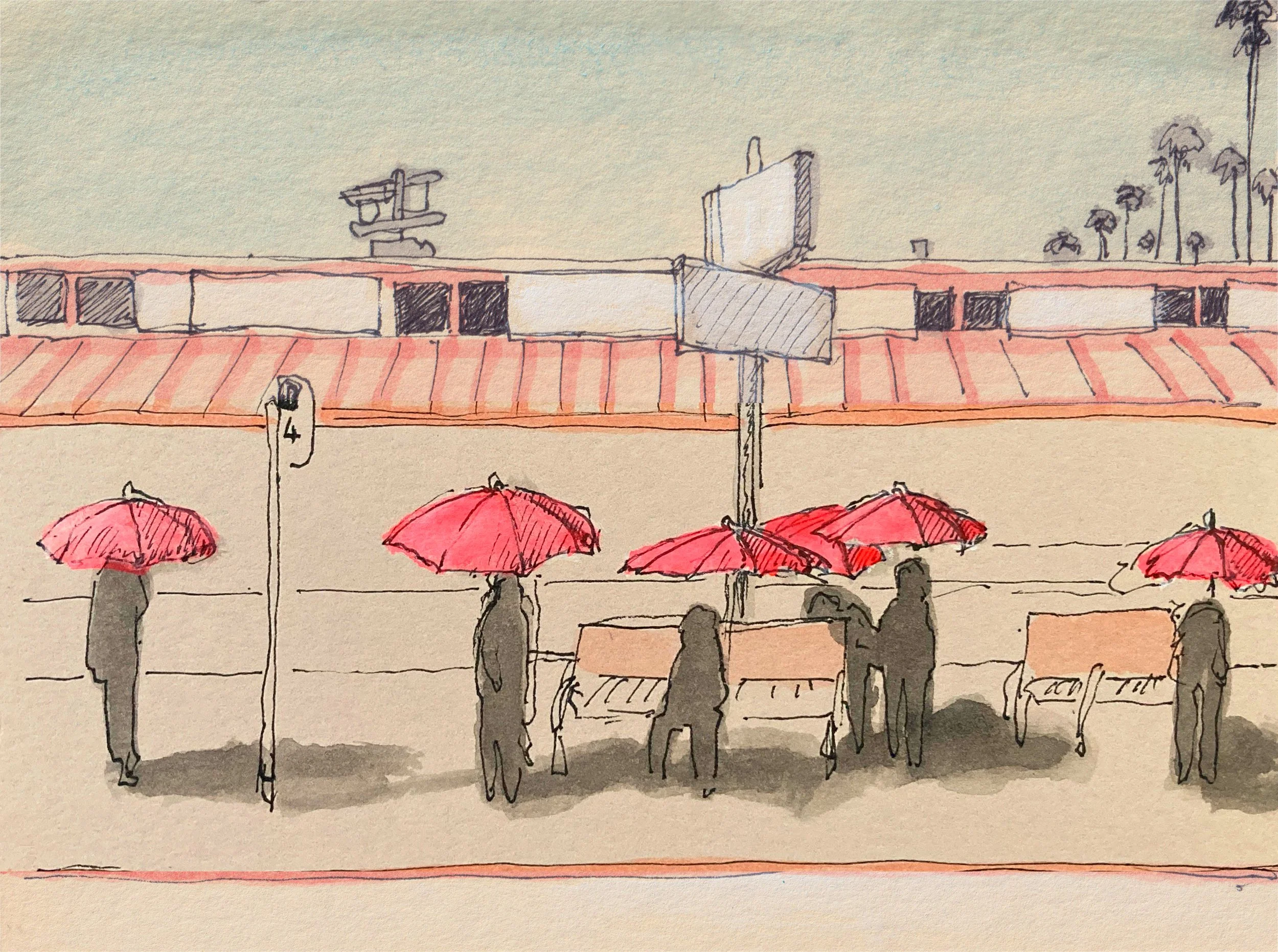 In the early mornings, if someone isn’t sleeping on the bus stop bench, I can sit in the shade. But by mid-morning, it’s a perilous situation to avoid the sun—I wedge myself between the pole and the curb—facing the oncoming traffic on Sunset. In the late afternoon, I stand awkwardly to fit within the sliver of thin shadow cast by the streetlight, or I huddle way too close to a rancid black trash can.. link →