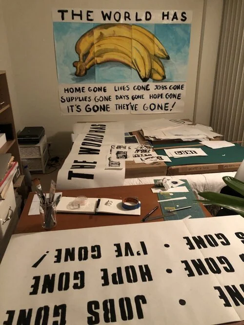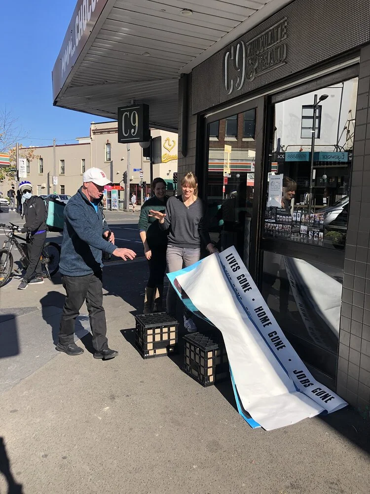 Wendy Murray was a recent recipient of one of the City of Sydney Covid-19 relief grants, the Creative Fellowship Grant. Her work The New Views Poster Project @newviewsposters will see Murray guide eight artists through the process of creating large site-specific posters for the windows of vacant, closed or partially operating businesses on King Street in Newtown. Each New Views Poster will be handmade using traditional poster making methods – paint, stencils and drawing. Collaborative artists include Tina Havelock Stevens, Jackson Farley, Molly Wagner, Sarah Edmondson, Toby Zoates, Thea Perkins, and ZAP.