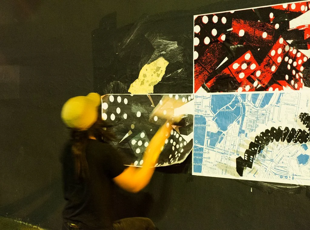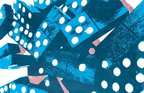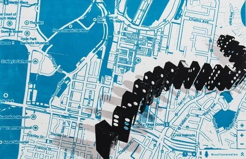 Mini Graff, Pipped at the post (Dominos), 2015. Acrylic screen print on 100gsm litho.
