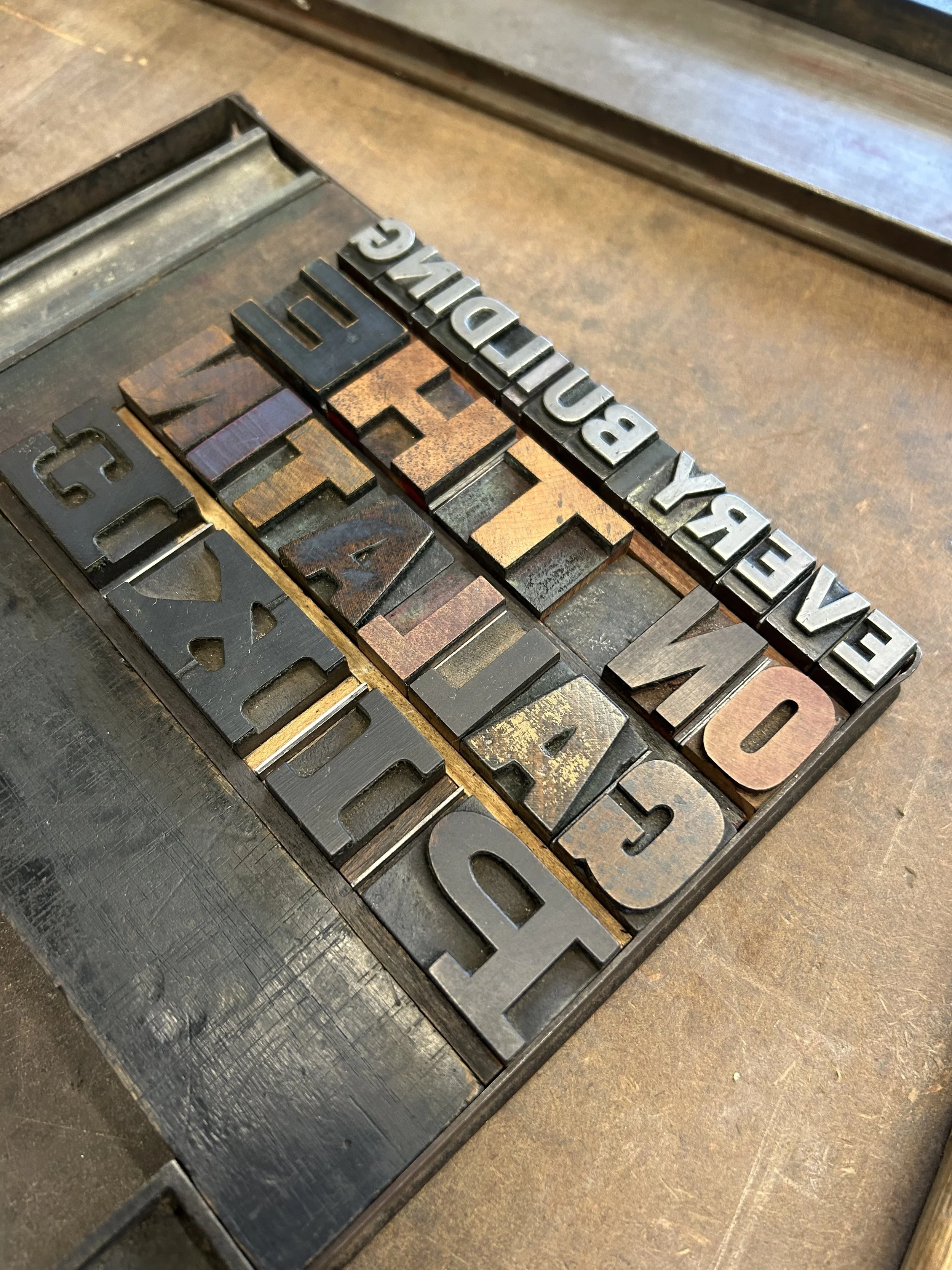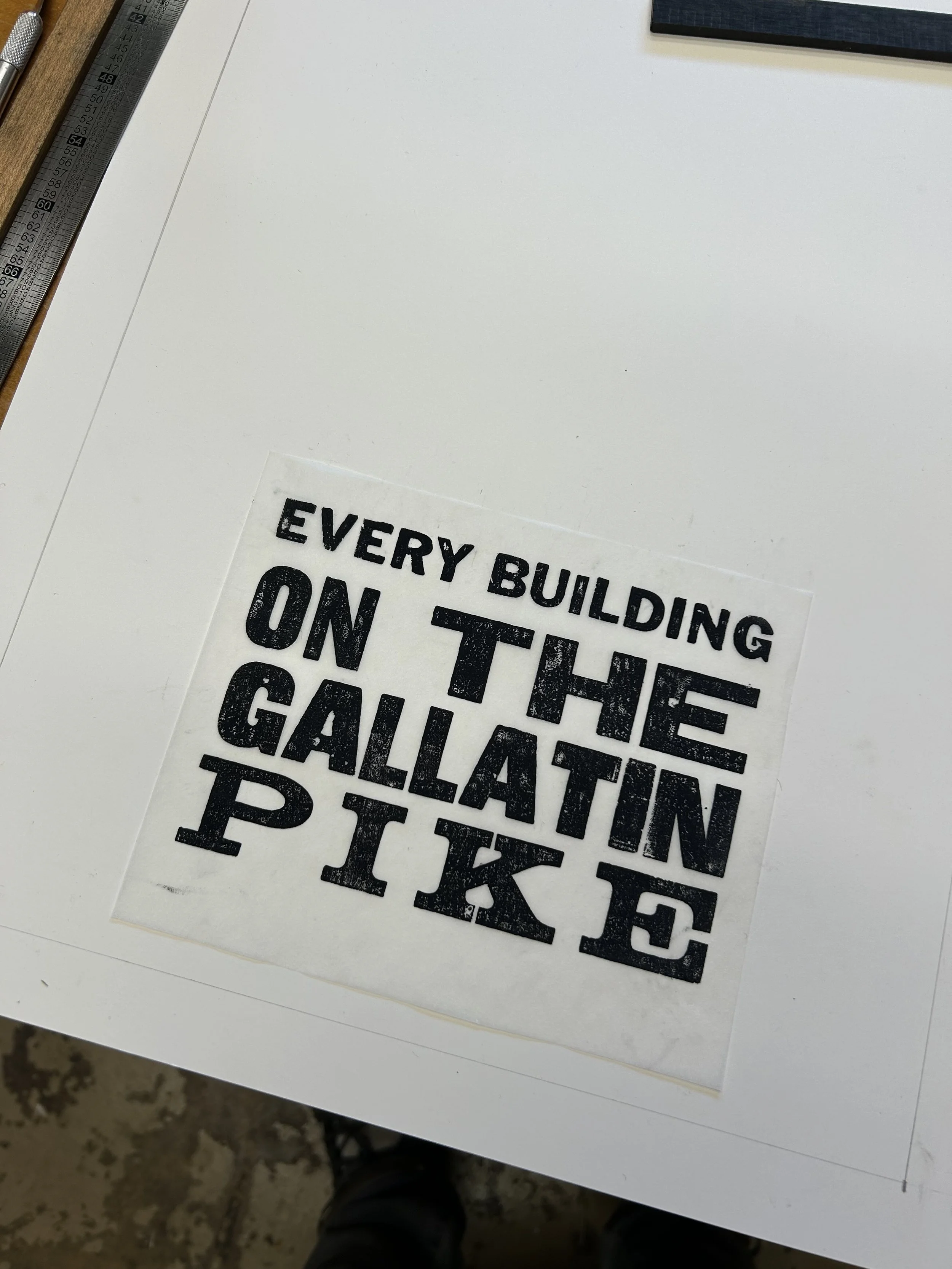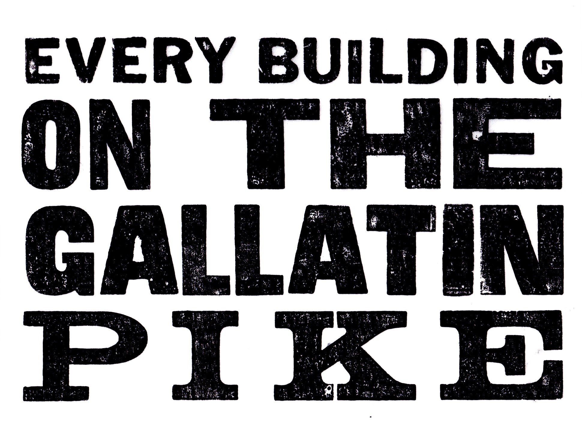 The Gallatin Pike artwork was made using traditional letterpress processes. With the help of local printer Laura Baisden, we designed and printed work that offered a nod to the legendary Every Building on the Sunset Strip artist book by Ed Ruscha.